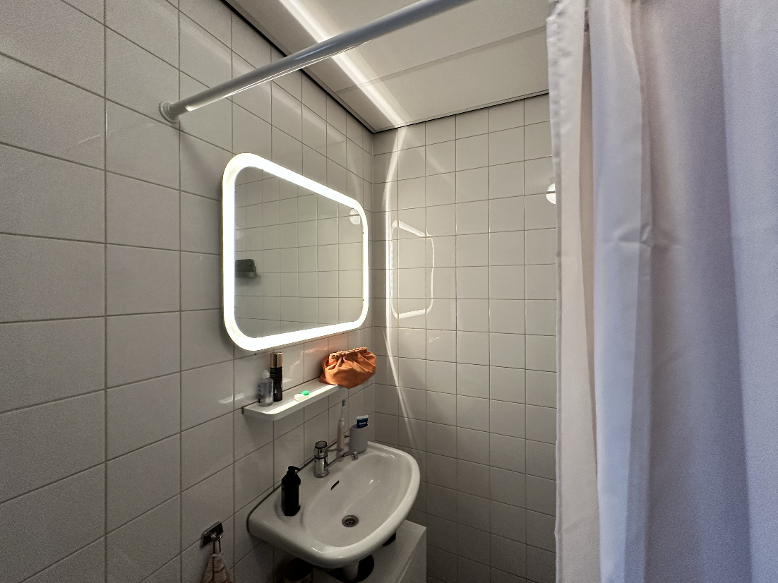 De studio heeft een woon/-slaapkamer met open keuken voorzien van een losstaande 2-pits inductiekookplaat en losstaande koelkast. De badkamer beschikt over een douche, toilet, wastafel en een boiler voor warm water.