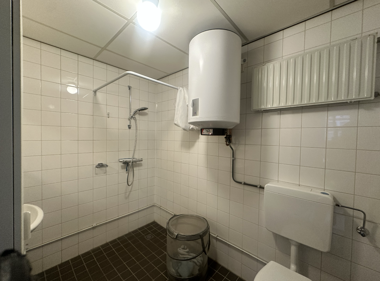 De studio heeft een woon-/slaapkamer met open keuken voorzien van een losstaande 2-pits inductiekookplaat en een losstaande koelkast (met klein vriesvak). De badkamer beschikt over een douche, toilet, wastafel en een boiler voor warm water.