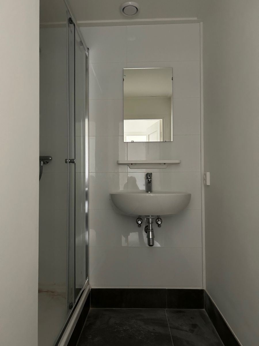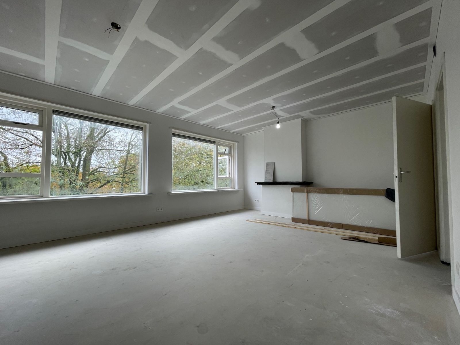 De foto's zijn gemaakt ten tijde van renovatie en geven een eerste indruk weer. De woonruimte wordt kaal opgeleverd, de muren en plafonds in witte kleurstelling.