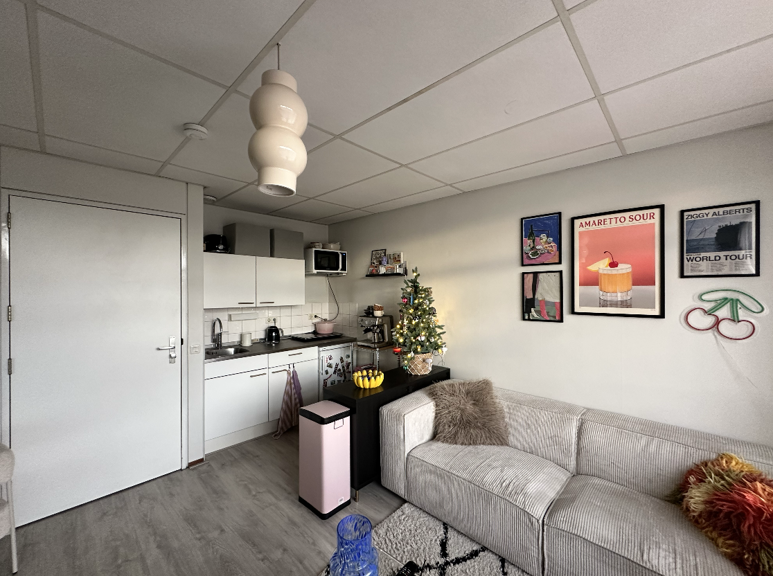 De studio heeft een woon/-slaapkamer met open keuken voorzien van een losstaande 2-pits inductiekookplaat en losstaande koelkast. De badkamer beschikt over een douche, toilet, wastafel en een boiler voor warm water.