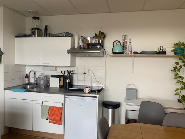 De studio heeft een woon-/slaapkamer met open keuken voorzien van een losstaande 2-pits inductiekookplaat, een losstaande koelkast (met klein vriesvak) en een boiler voor warm water. De badkamer beschikt over een douche, toilet en wastafel.