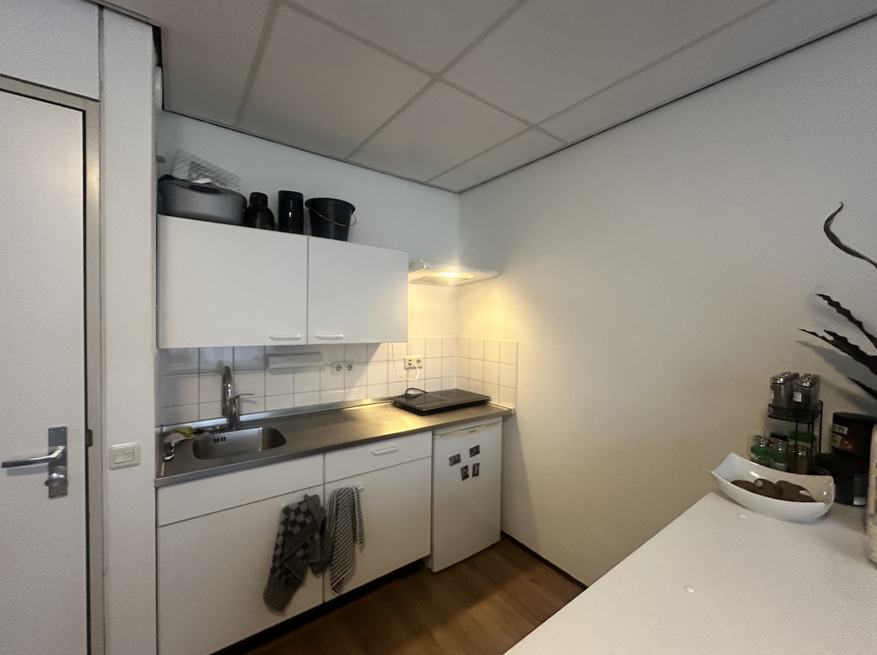 De studio heeft een woon-/slaapkamer met open keuken voorzien van een losstaande 2-pits inductiekookplaat en een losstaande koelkast (met klein vriesvak). De badkamer beschikt over een douche, toilet, wastafel en een boiler voor warm water.