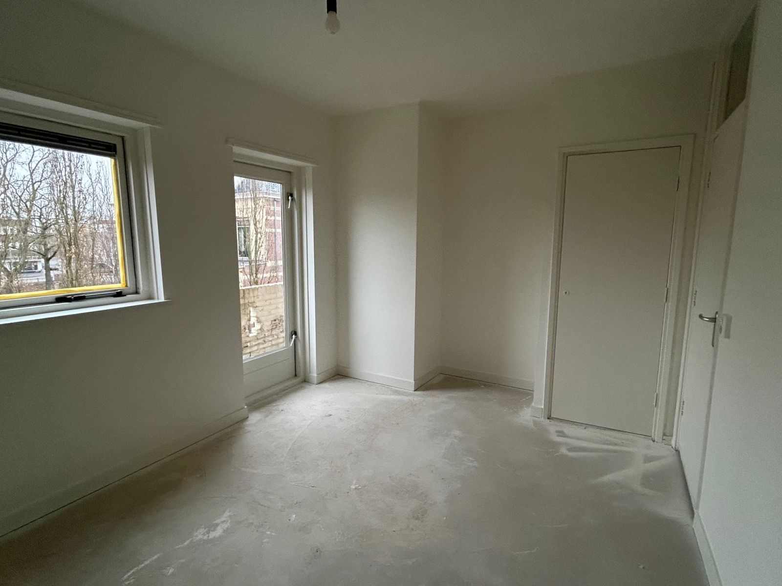 De foto's zijn gemaakt ten tijde van renovatie en geven een eerste indruk weer. De woonruimte wordt kaal opgeleverd, de muren en plafonds in witte kleurstelling.